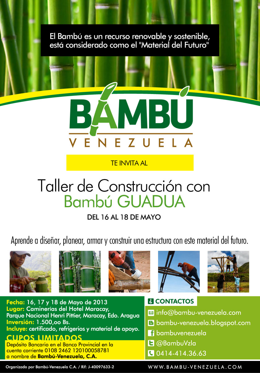 Objetivos: generar en el participante los conocimientos y técnicas necesarios para la elaboración de estructuras de bambú guaduacombinada con otros materiales de la construcción a través de sesiones teóricas y prácticas, dirigidas por especialistas.