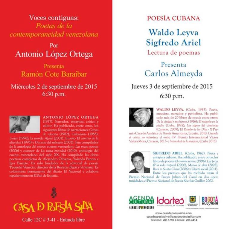 INVITACIÓN MIÉRCOLES 2 Y J UEVES 3 DE SEPTIEMBRE A LAS 6:30 P.M. EN LA CASA DE POESÍA SILVA.