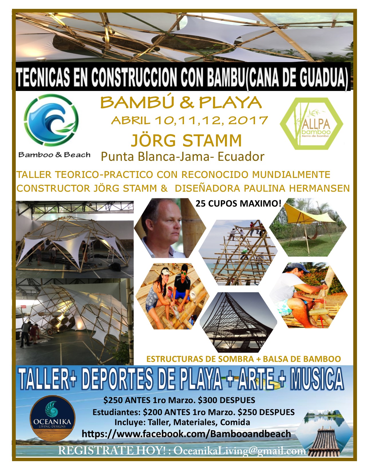 Dear Friends, here again the call for the bamboo on the beach workshop in April 10 to 12, 2017.