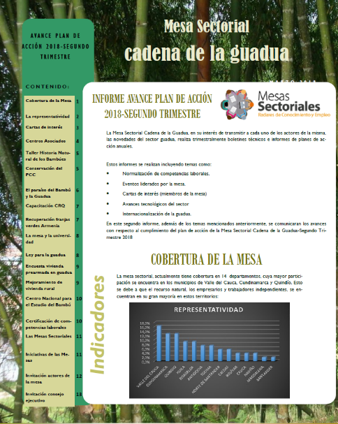La Mesa Sectorial Cadena de la Guadua, les presenta el Boletín informativo No.2 en el cual informamos las actividades desarrolladas durante el segundo semestre de 2018. Descargar archivo adjunto