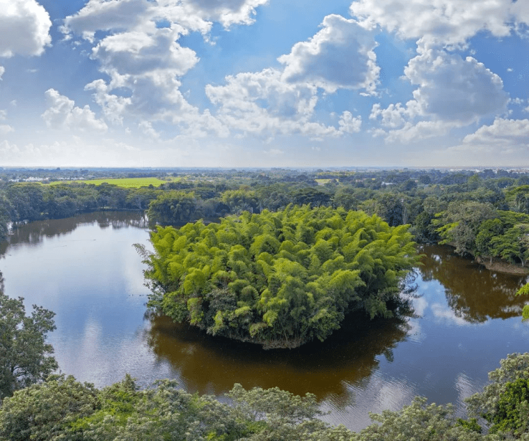 Antes y después del humedal recuperado por la constructora. Foto: Jaramillo Mora Constructora.